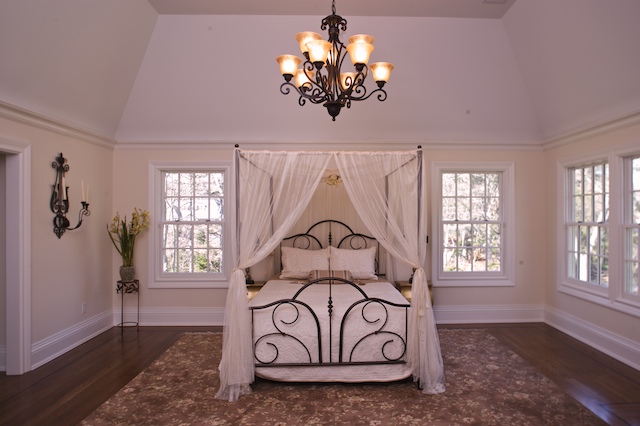 Drape Fabric: If possible, add draped curtains or gauzy fabric to the bed. This gives your bed a cocoon-like aura that’s so romantic. Here’s a great (and inexpensive) idea that we did for a beautiful home that we staged in Muttontown NY.
